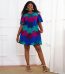 Spring/Summer Long sleeved V-neck Fashion Printed Waist Wrapped Dress for Women