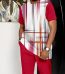Men's Red Vertical Stripe Print Short Sleeve Suit plus size men's clothing clothes for man