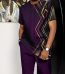 Men'S Purple Vintage Ombre Print Short Sleeve Walking Suit Clothes Suit For Man