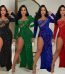 Sexy Club Rhinestone Mesh Dress For Ladies Night Dresses For Woman Sexy Split Maxi Dress