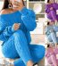 Fall Winter Polyester Cashmere Loungewear Knit Hoodie Sweater Pant Set Women Ribbed Knitted 2 Two Piece Pants Set