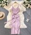 2024 Solid color sexy women’s vest halter skirt fashion hem hole simple European and American dress