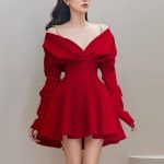 2024 New Autumn/Winter Dresses Women’s Long sleeved V-neck Waistband Sexy A-line Hanging Dress Short dress