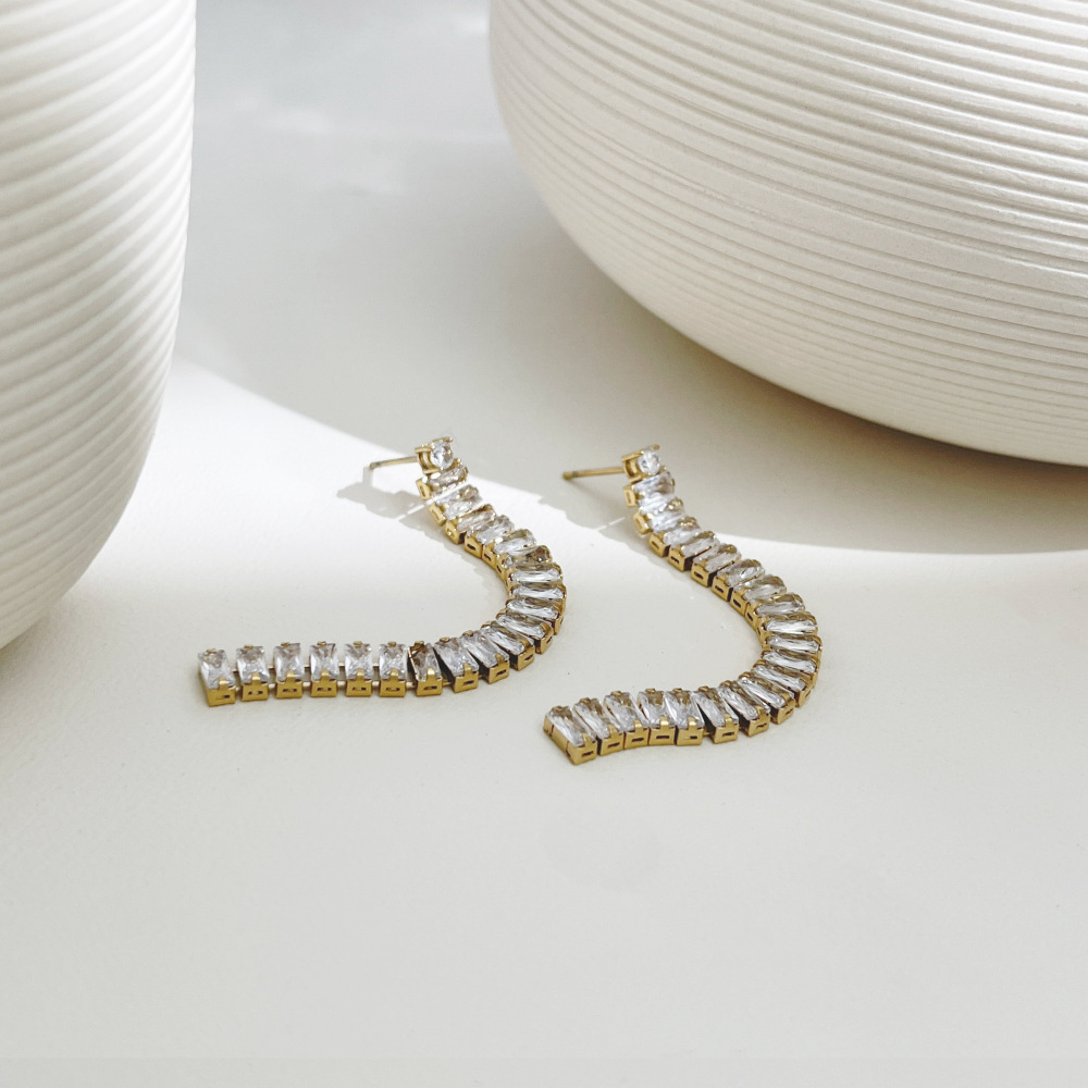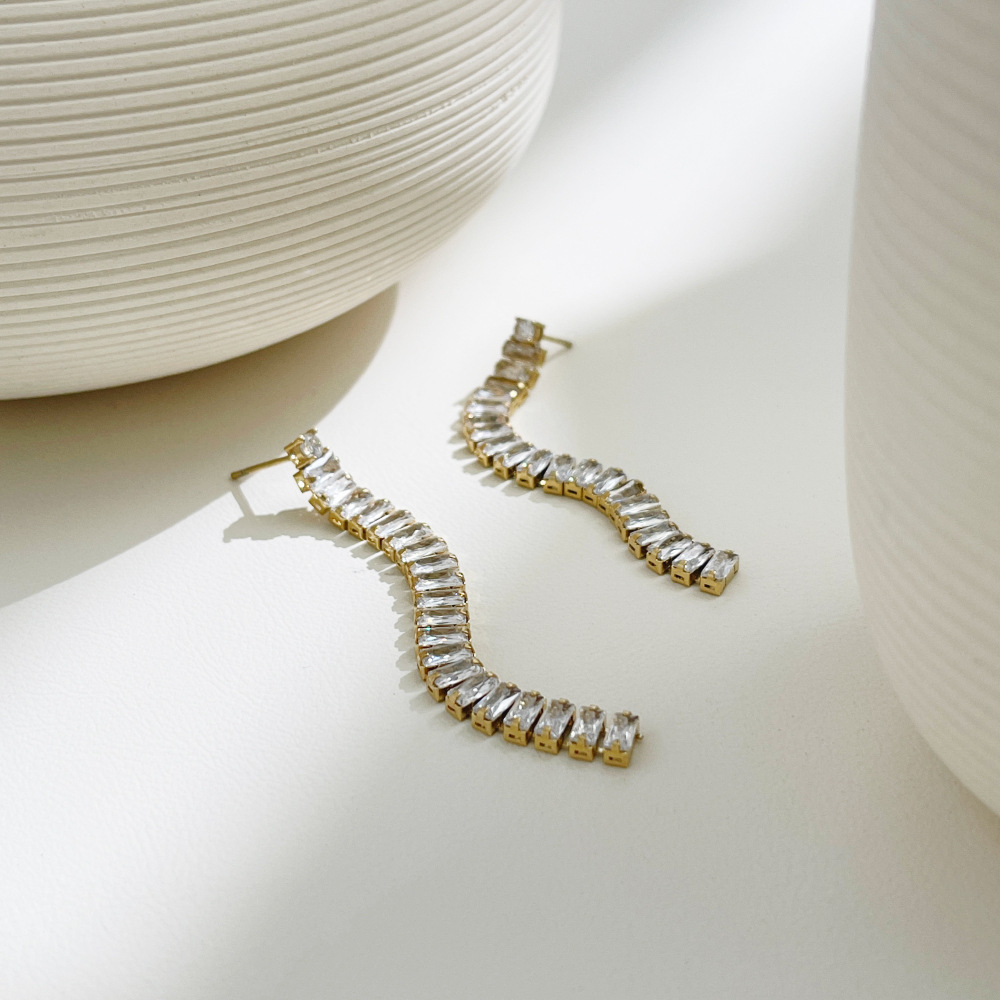 2024 New Stainless Steel Jewelry Rectangular Zircon Chain Eardrop Long Tassel Full of Star Earrings