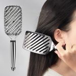 Black Silver Color ABS Plastic Paddle Square Hair Brush Anti Static Hair Massage Comb Nylon Hollow-out Vent Hair Brush