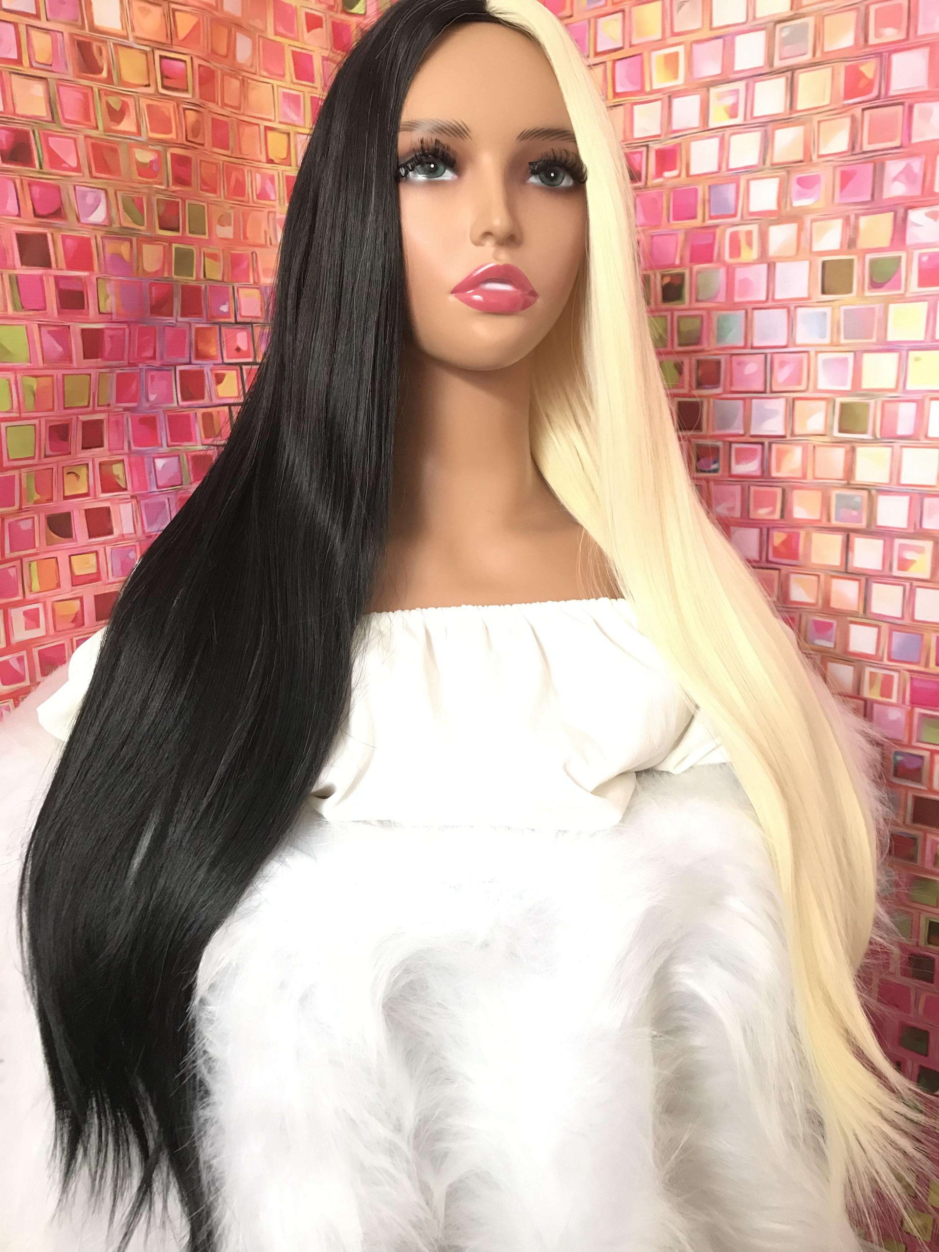 Black women’s straight long wigs are made entirely with natural hair thread, heat-resistant wigs, and multiple colors for Hallow
