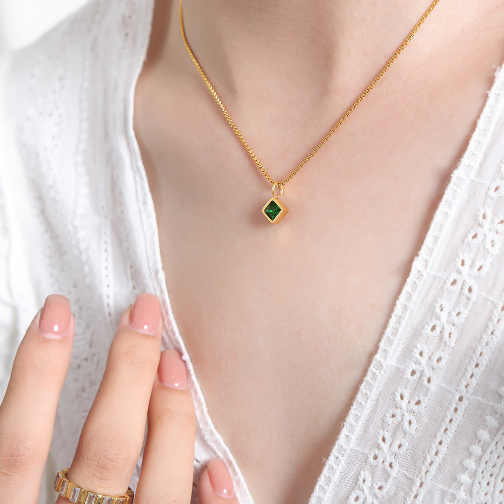 Bohemia Multicolor Little Square Zircon Necklace Does Not Fade Girls Dopamine Jewelry
