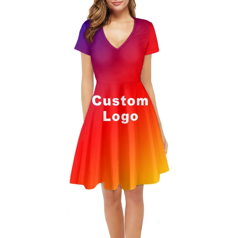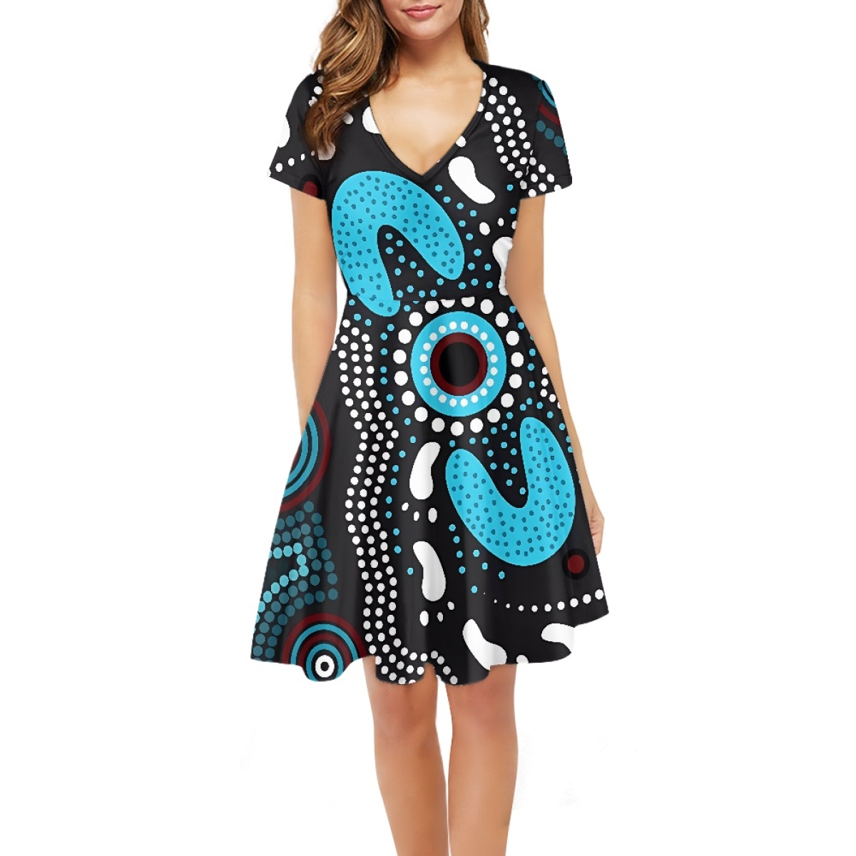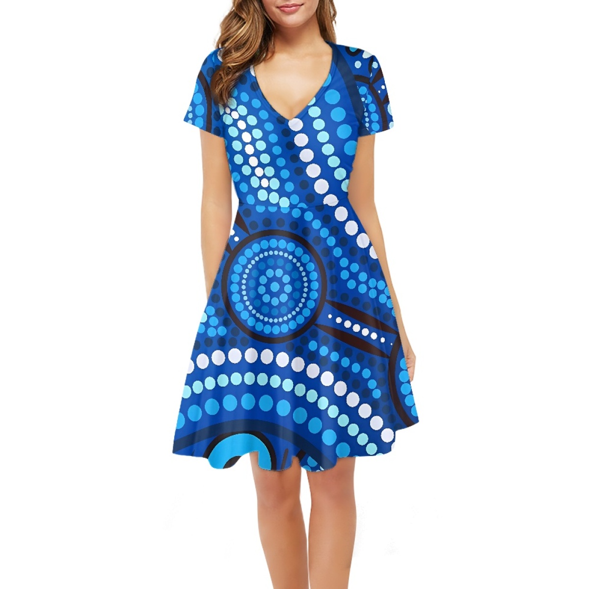 Custom Design Dress With Australian Pattern Wholesale Polyester Spandex Soft Dresses Short-Sleeved V-Neck Breathable Clothing