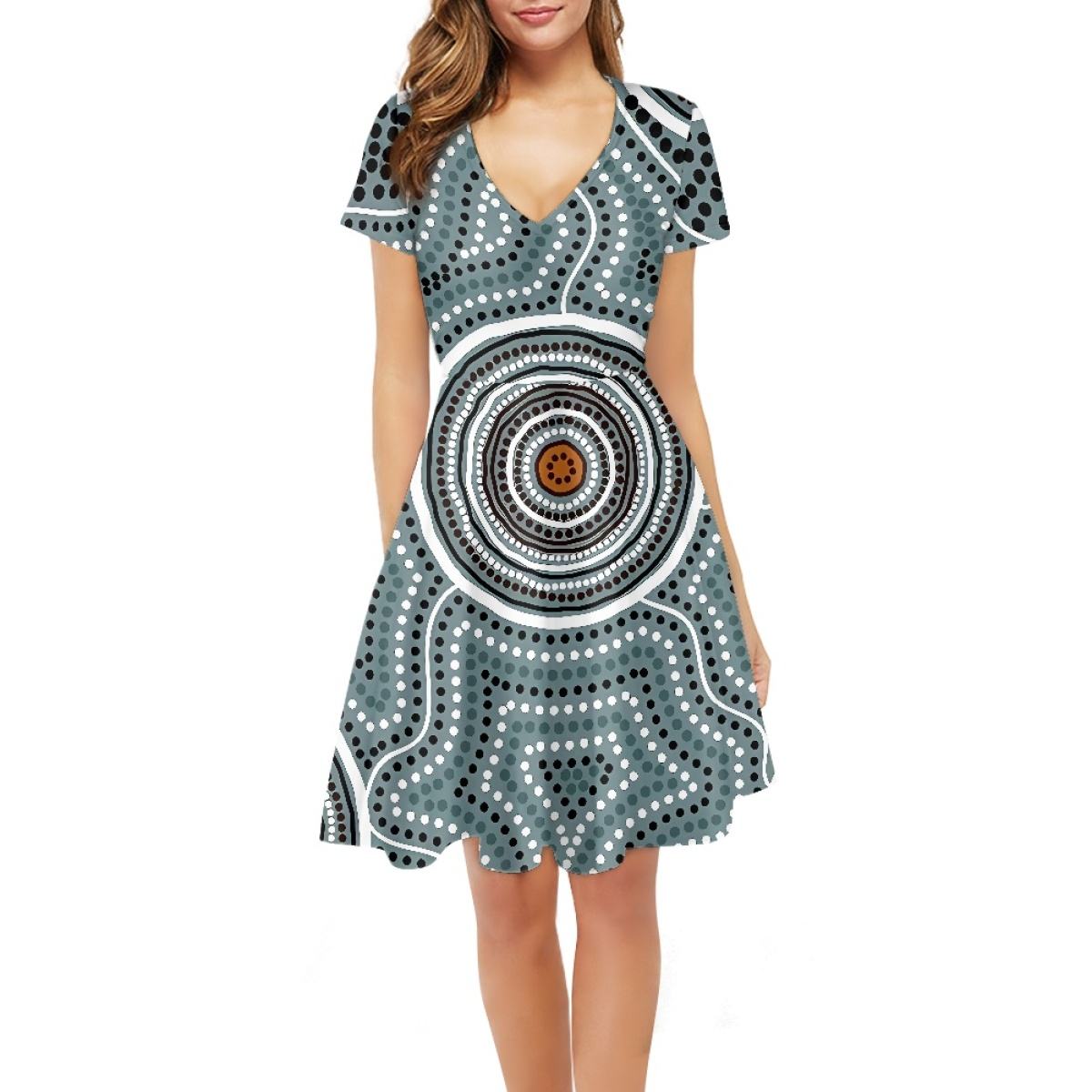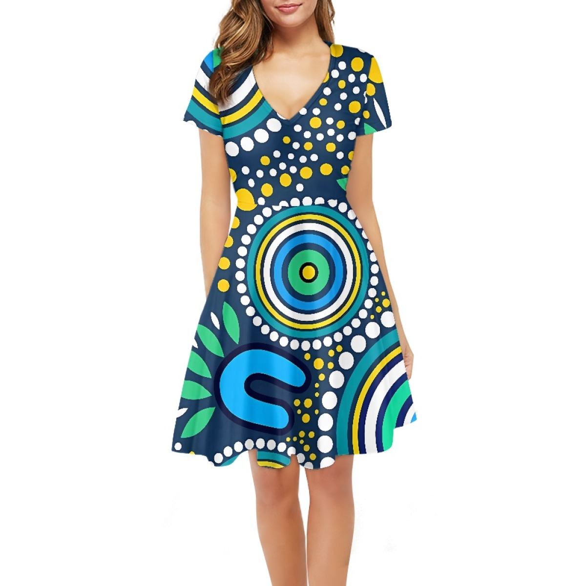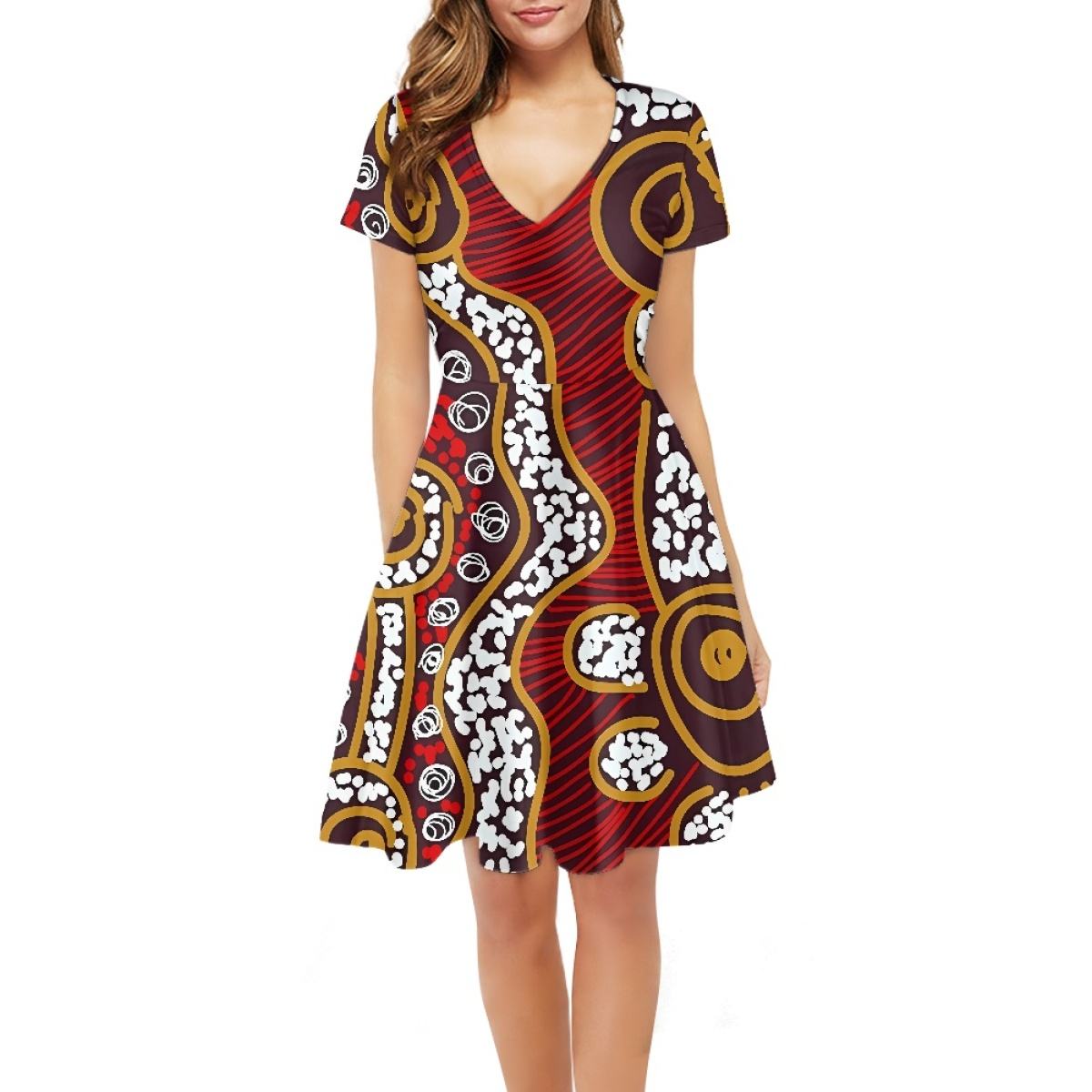 Custom Design Dress With Australian Pattern Wholesale Polyester Spandex Soft Dresses Short-Sleeved V-Neck Breathable Clothing