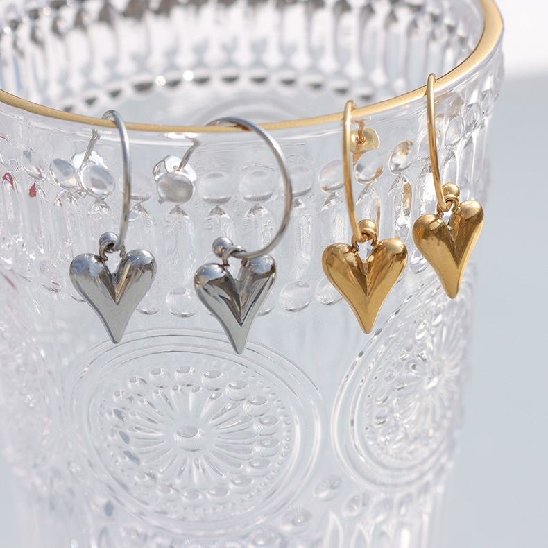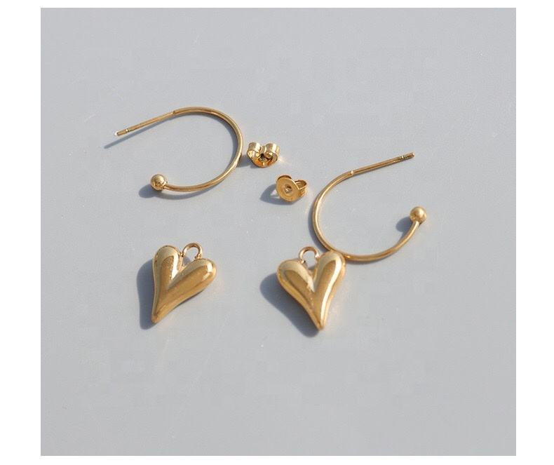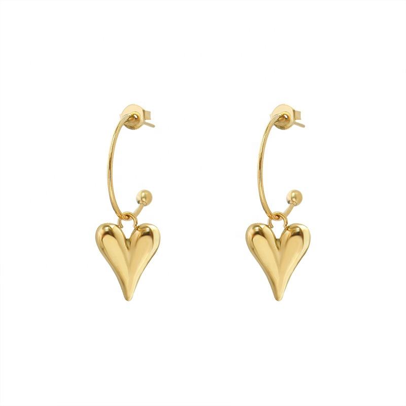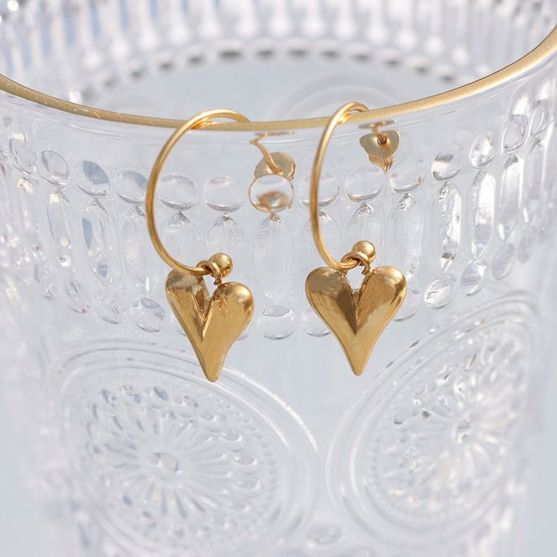 Customization new Stainless steel hoop earrings minimalist gold heart shaped pendant earrings