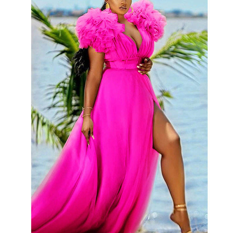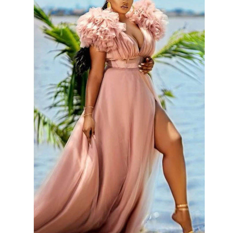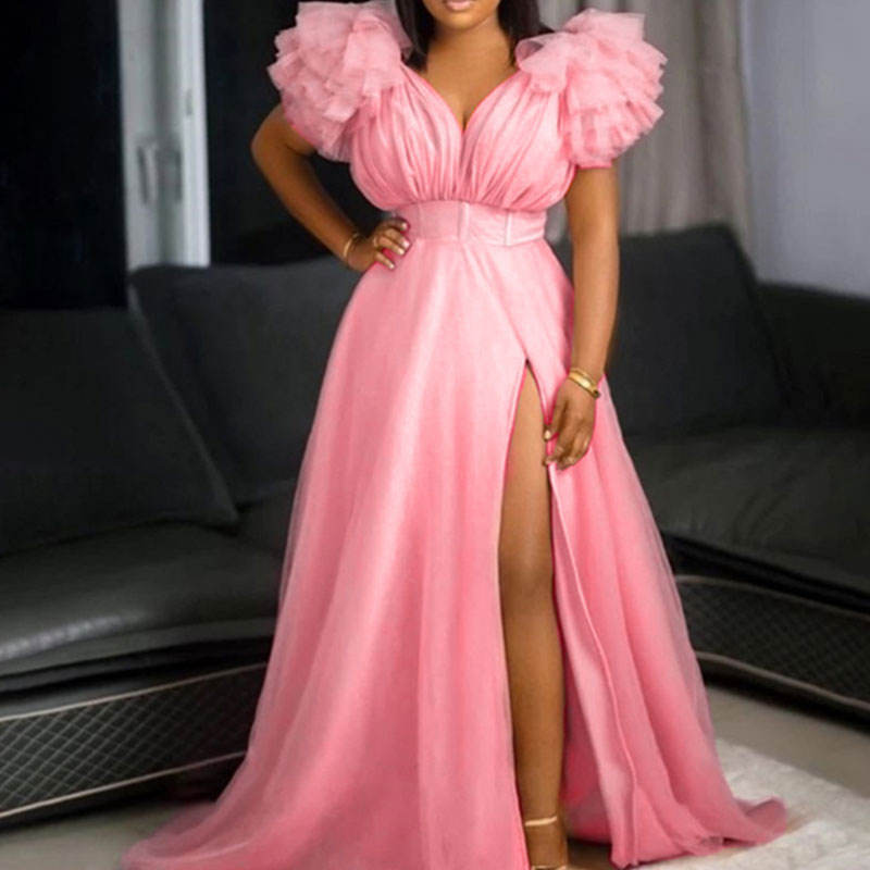 European and American hot style party wear fashion big hem line mesh deep v-neck women sexy night dresses