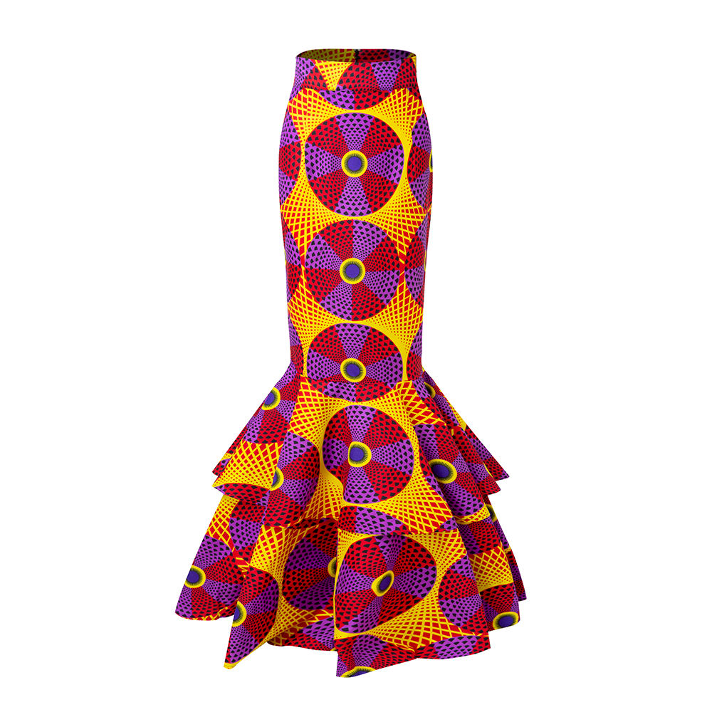 Fashion Women Polyester Wax Long Skirt For Party Elegant Design With Zipper African Ankara Print Pattern
