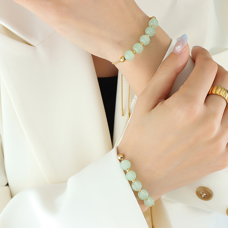Girls Basic Hand-beaded Jade Pull Button To Adjust The Length Colorfast customization
