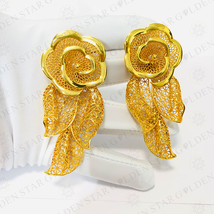 Golden Star Gold Plated Luxury Hoop Earring Golden color Drop Customized Copper Flower Women Earring jewelry