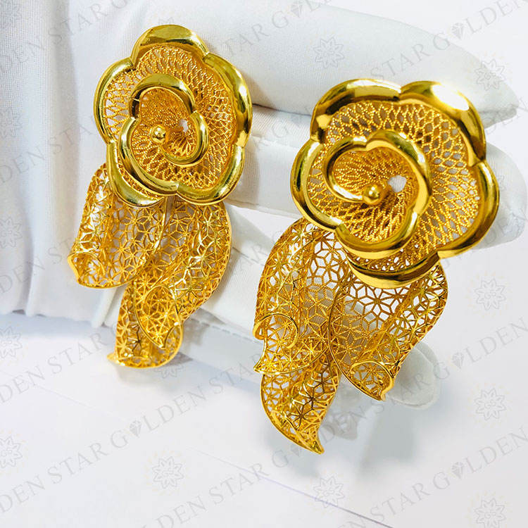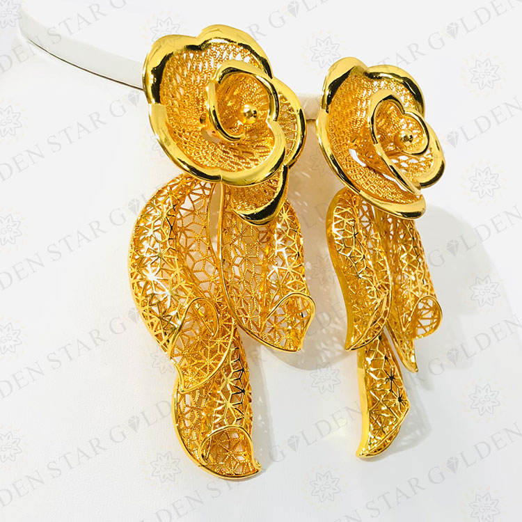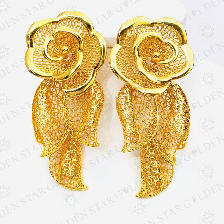 Golden Star Gold Plated Luxury Hoop Earring Golden color Drop Customized Copper Flower Women Earring jewelry