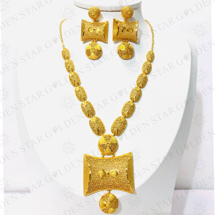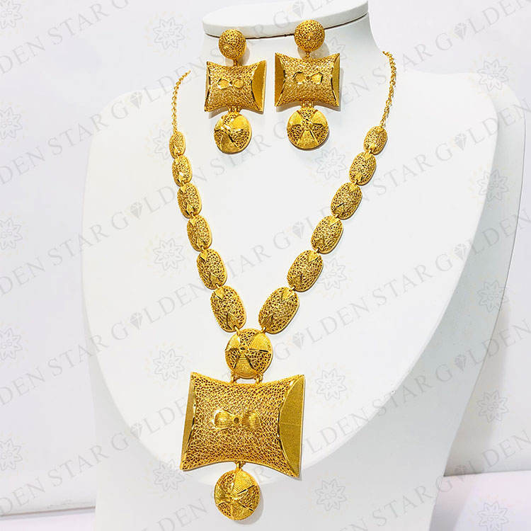 Golden Star High Quality Gold Plated Necklace Set Jewelry With New Style Gold Plated Earing Set