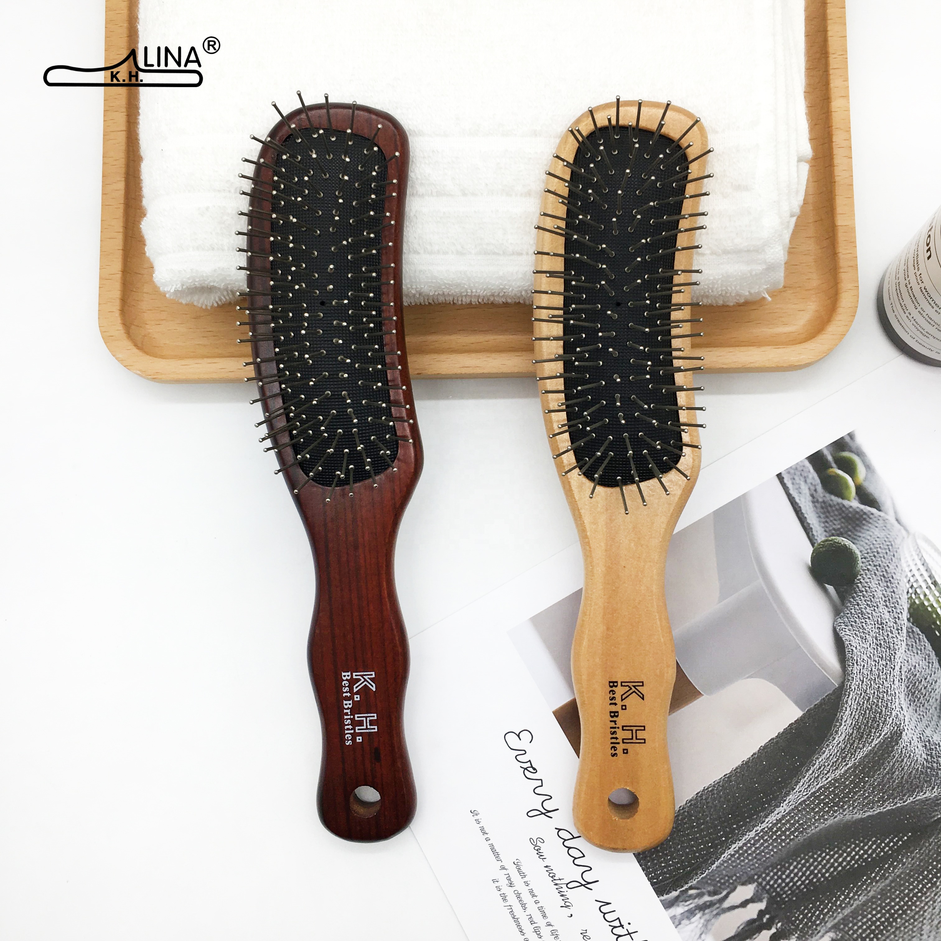 Hair salon custom made by logo of metal needle brush for barber household