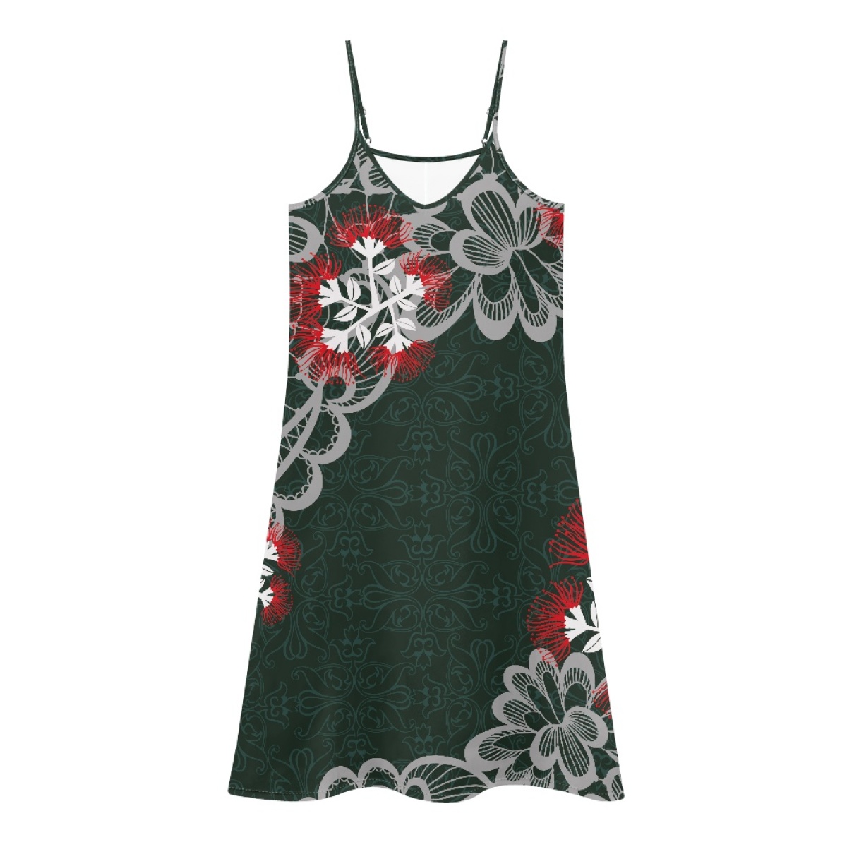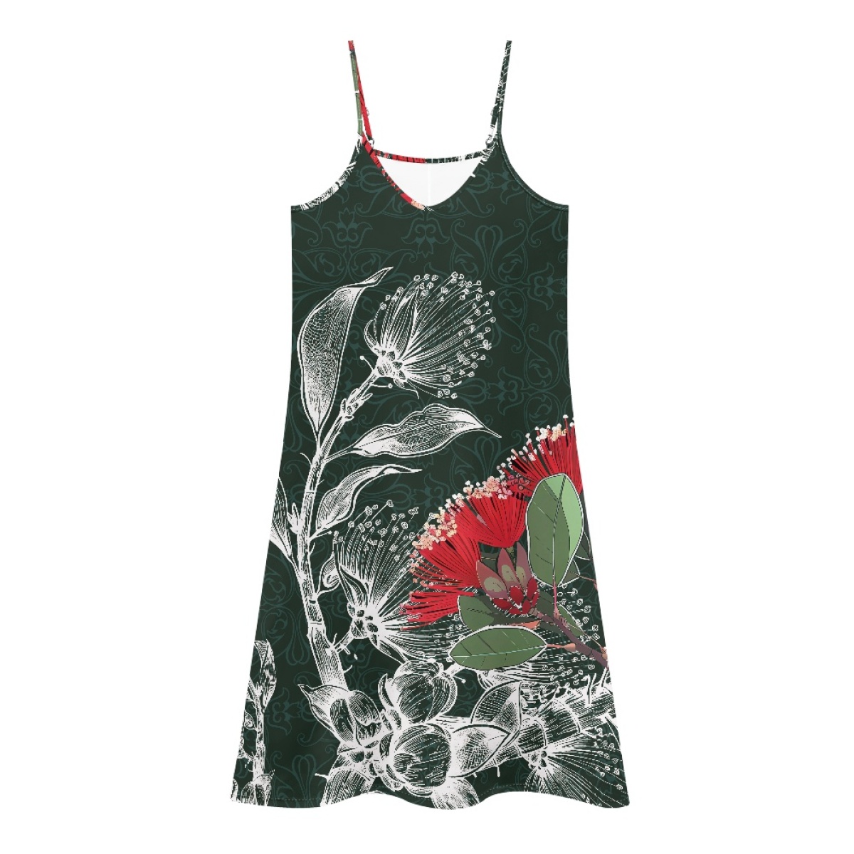 Hawaiian Lehua Pohutukawa Flowers Designs Slip Dresses Wholesale Comfortable Halter Dress Sexy Fashion Breathable Clothing