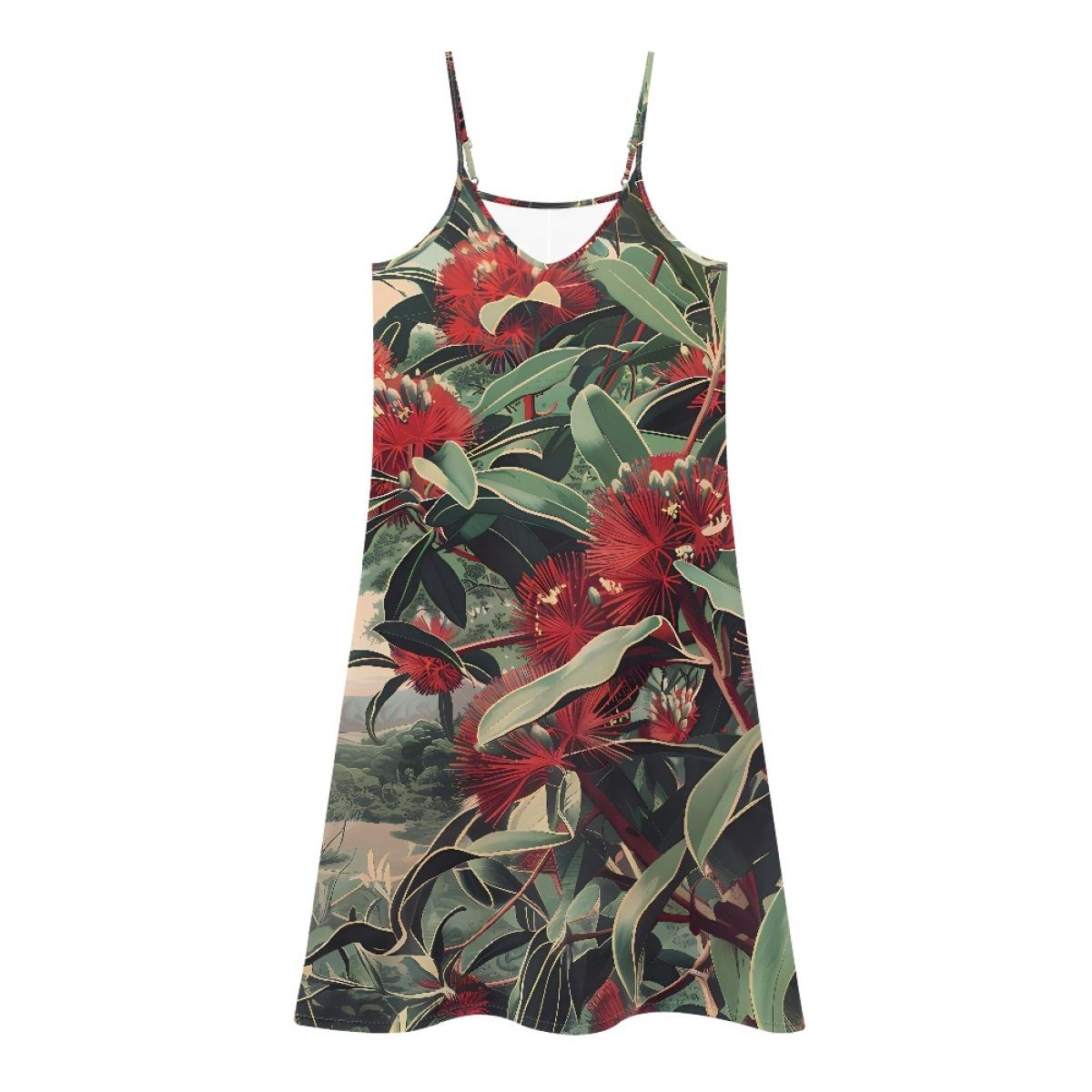 Hawaiian Lehua Pohutukawa Flowers Designs Slip Dresses Wholesale Comfortable Halter Dress Sexy Fashion Breathable Clothing