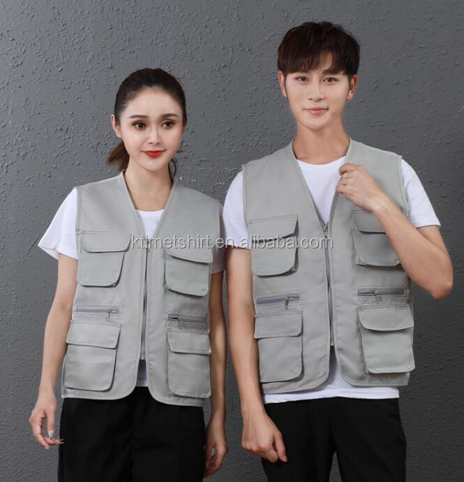 Hot Popular Fast Shipping Khaki multi pocket mens journalist vest Manufacturer China supermarket jackets