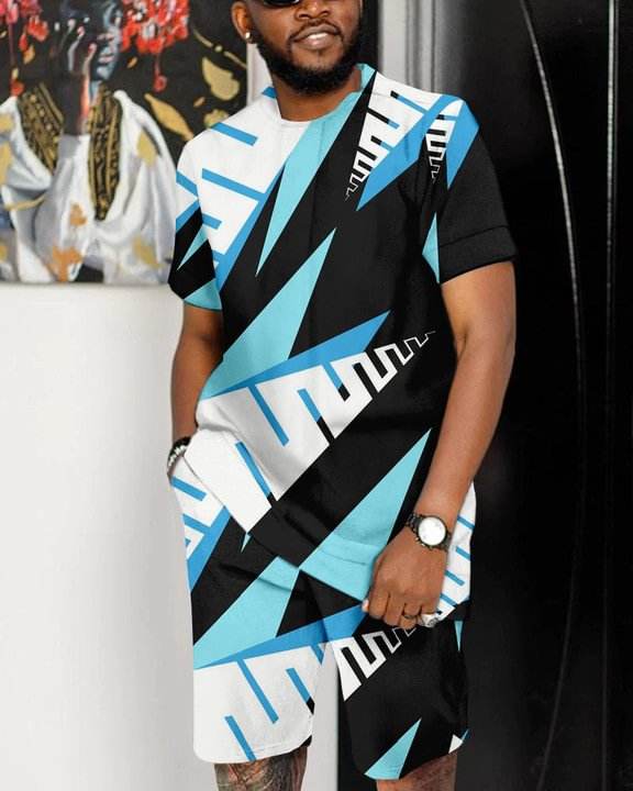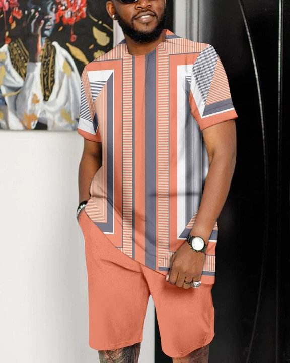 Hot Selling Casual Men’S Colorblock Print Shorts Set Men Suit Wear Clothes African For Men