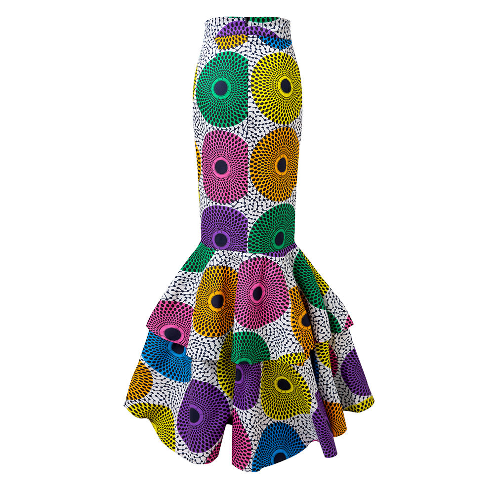 Hot Selling Spring Fashionable African Style Cotton Wax Fabric Women Skirt
