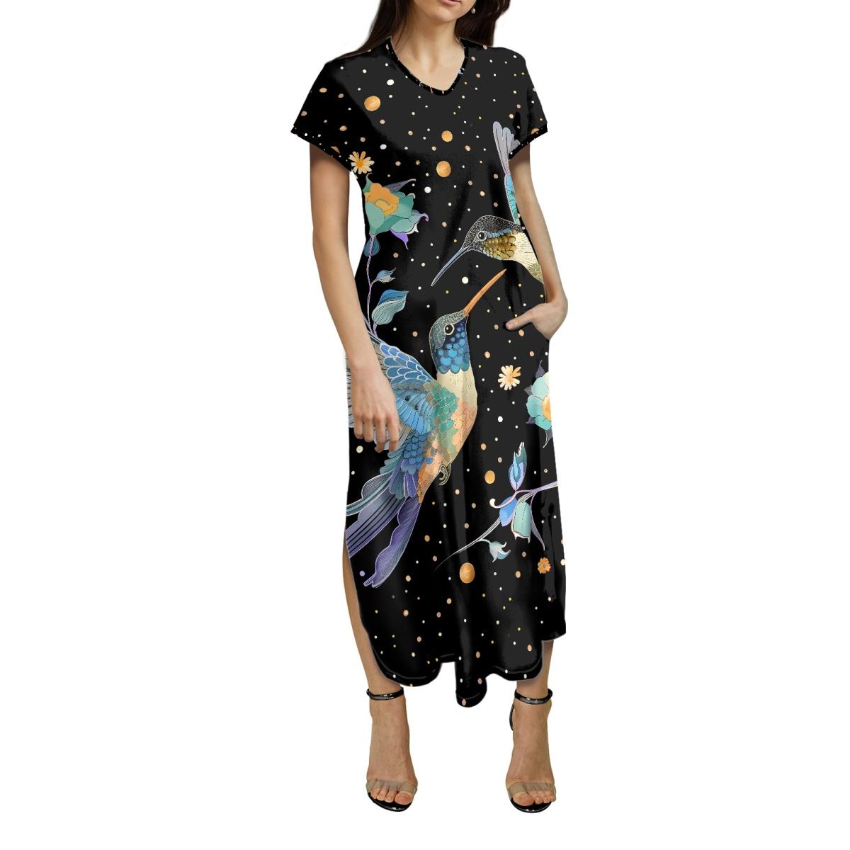 Hummingbird Designed Short-Sleeved Dresses Dropshipping Comfortable Breathable Dresses Polyester Spandex Casual Clothing