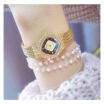 luxury shiny diamond watch and bracelet set Rhinestone Decor Quartz Bracelet Watch Casual Cuff Bangle Watch for women