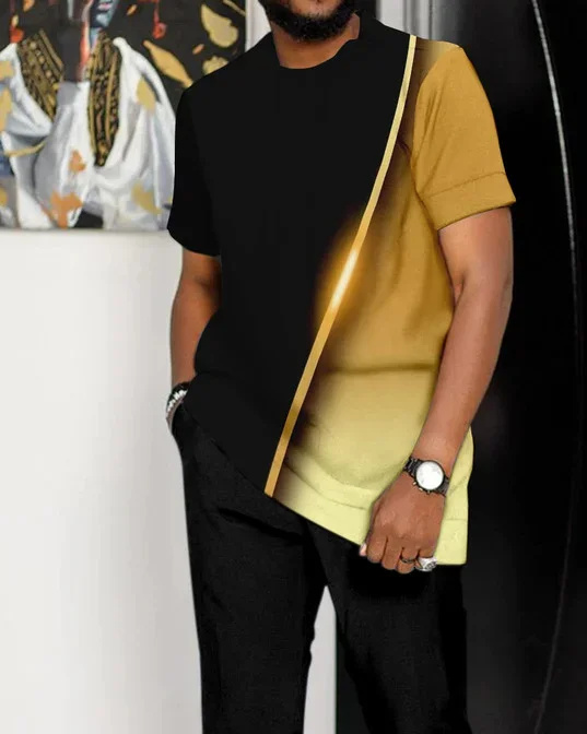2024 New Design Men'S Panel Print Short Sleeve Suit Cotton Breathable Men Designer Style Summer Clothes For Men