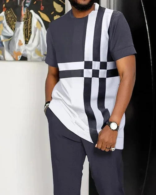 2024 New Design Men'S Panel Print Short Sleeve Suit Cotton Breathable Men Designer Style Summer Clothes For Men