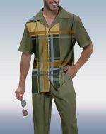 Men'S Green Plaid Print Short Sleeve Shirt Walking Set Men'S Suits Designer Clothes Set