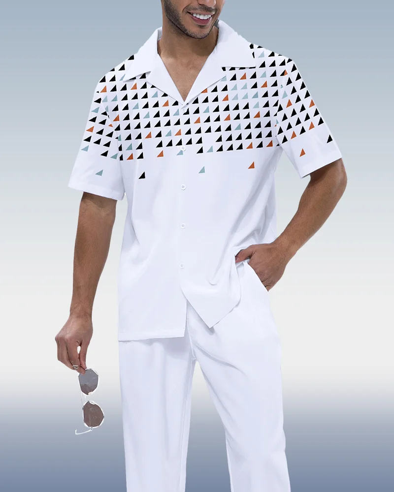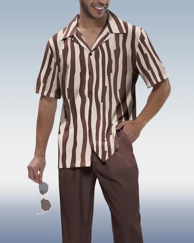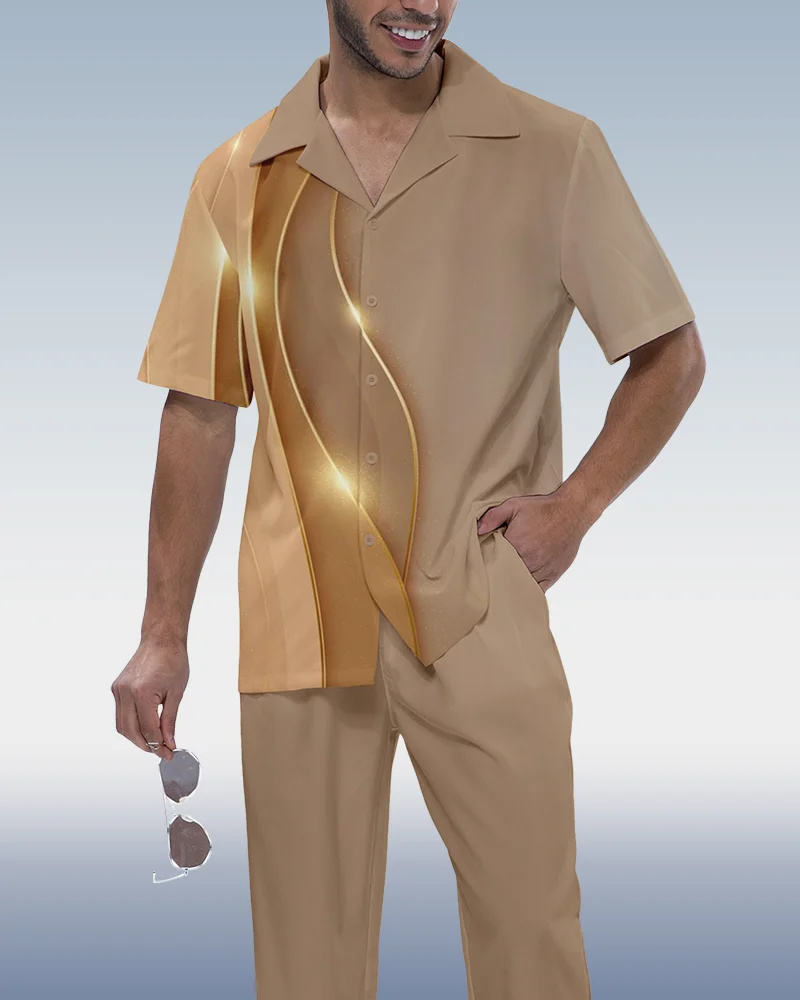 Fission Two-Piece Short Sleeve Printed Walking Suit Clothes Men Style Clothes For Man