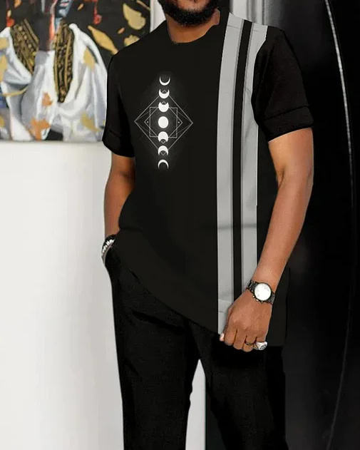 Men's Retro fashion Black Casual Short Sleeve Sports Hiking Suit clothes men set for man