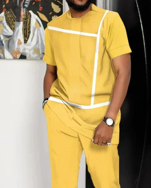 Men’S Orange Color Simple Short Sleeve Sports Walking Suit Cotton Breathable Suit Clothes Men Style Summer For Men