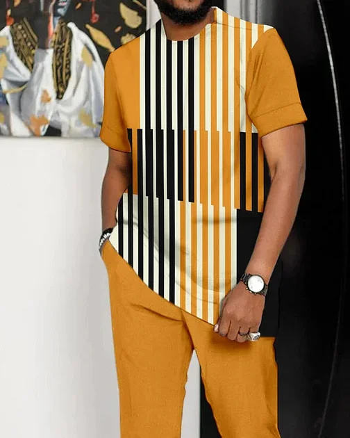 Men’S Orange Color Simple Short Sleeve Sports Walking Suit Cotton Breathable Suit Clothes Men Style Summer For Men