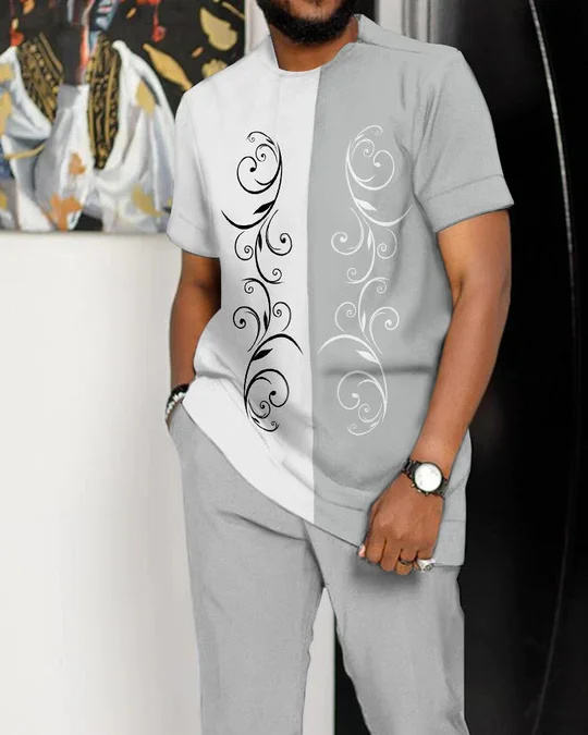 Trendy Retro Flower Pattern Men'S Colorblock Print Walking Suit Cotton Breathable Men'S Suits Style Summer Clothes For Men
