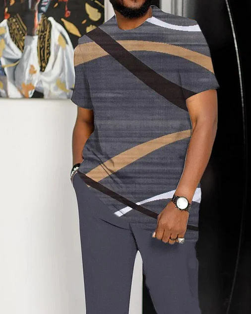 Men's Black Leisure Ombre Print Short Sleeve Suit men designer clothes set man suit