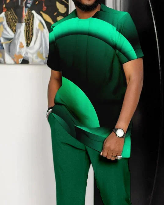 Men's Green Leisure Ombre Print Short Sleeve Suit men's suits designer clothes set