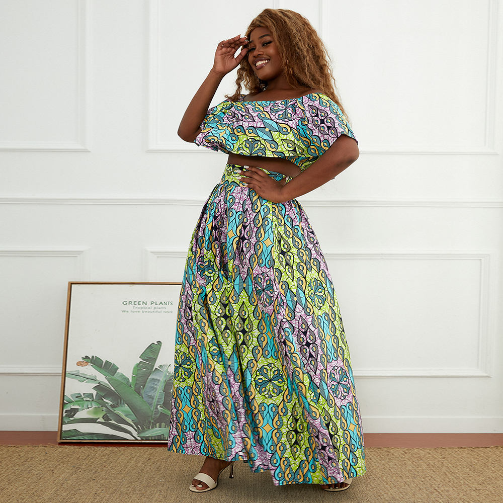 Most Popular African Off Top And Skirt Set Fashion Ankara Wax Print African Clothing for Women