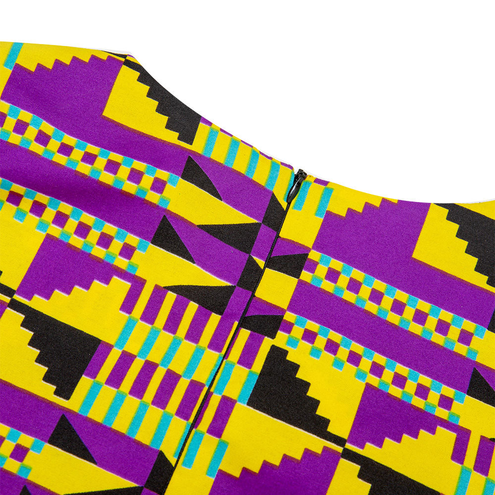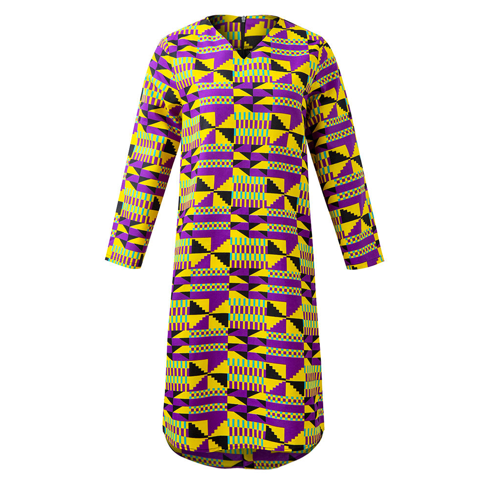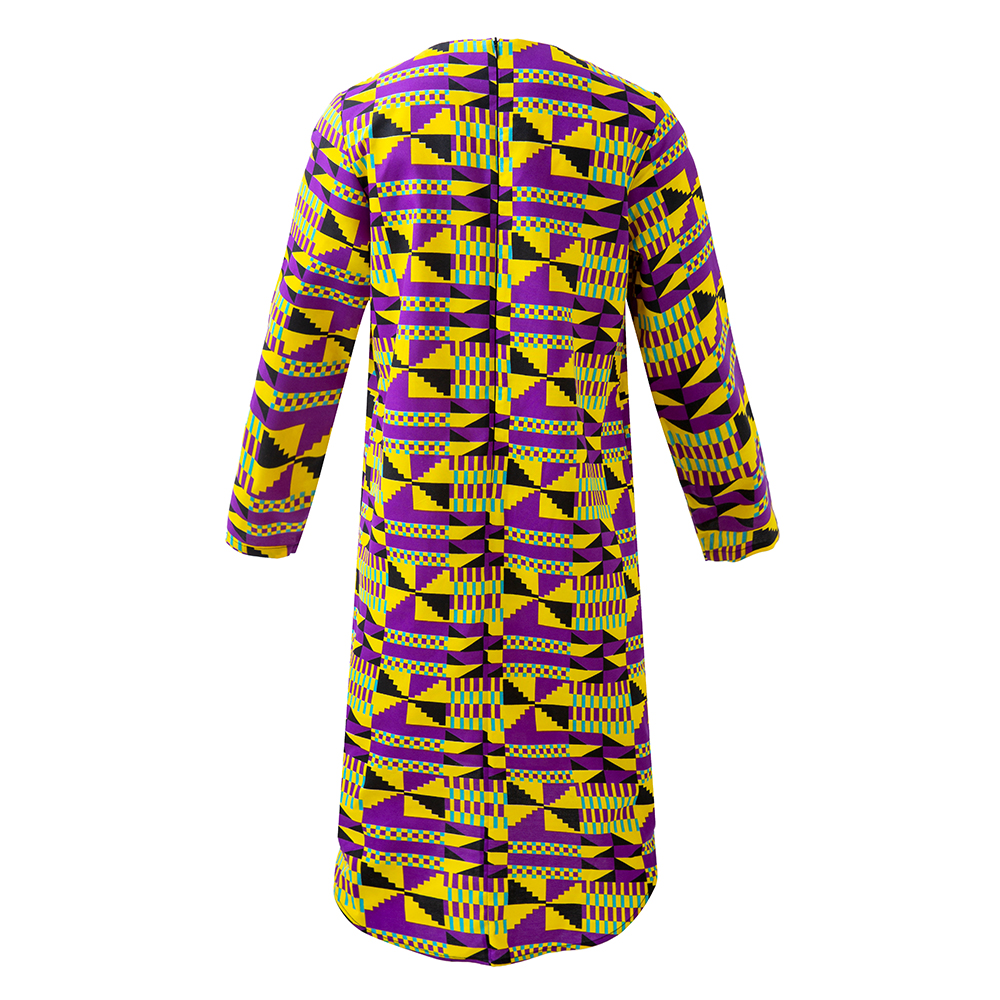 New arrive Ankara print Long Sleeve dress Fashion Colorful Newest O-Neck Women fit wear