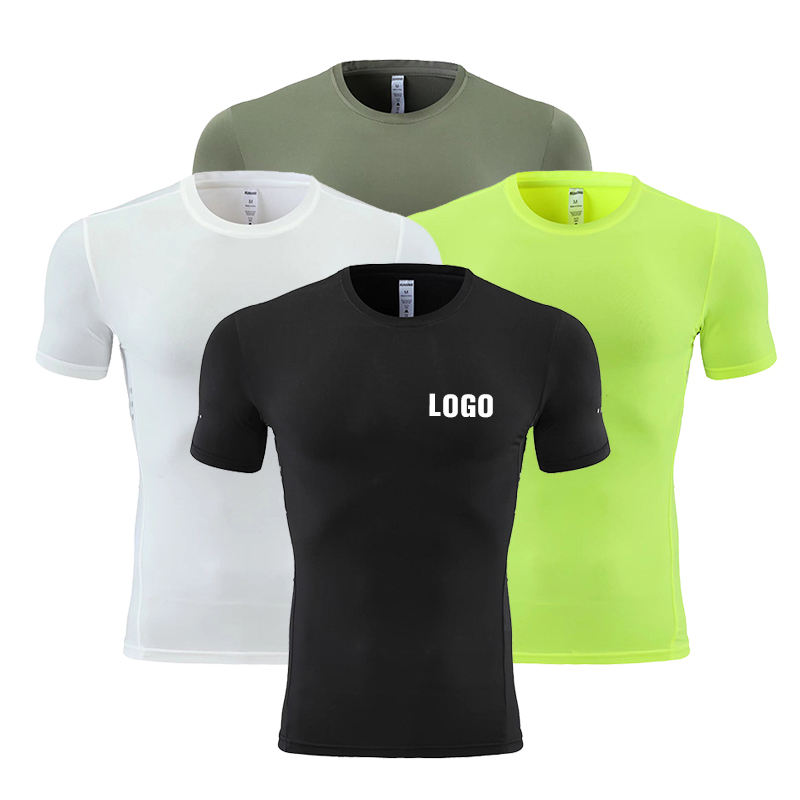 New Design Elastic Fit Gym Wear Polyester Spandex Gym Wear T Shirts Training Men Breathable Compression T Shirt
