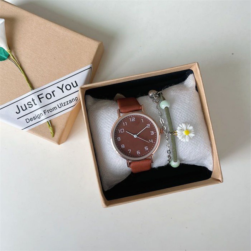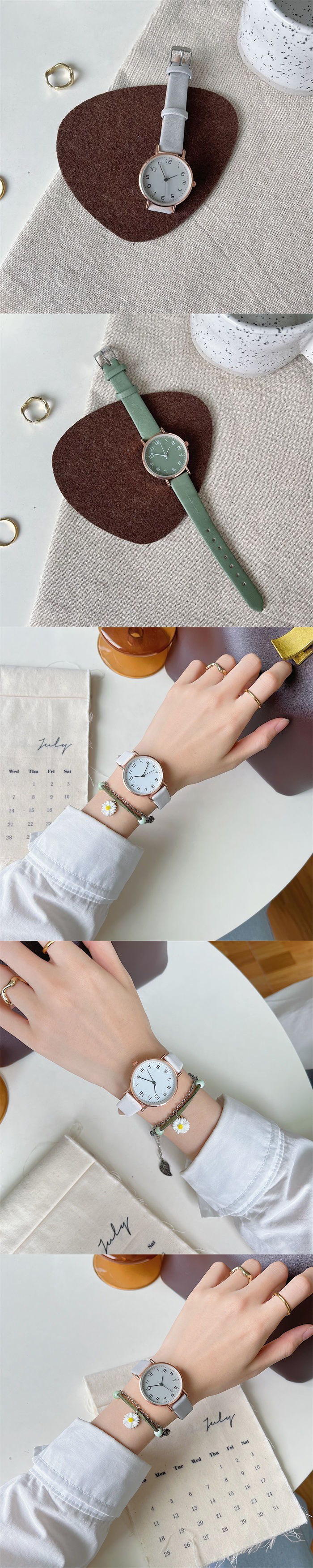 New Design Female Watch Fashion Casual Leather Band Simple Wristwatch Ladies Round Dial Quartz Home Watch Set Dress