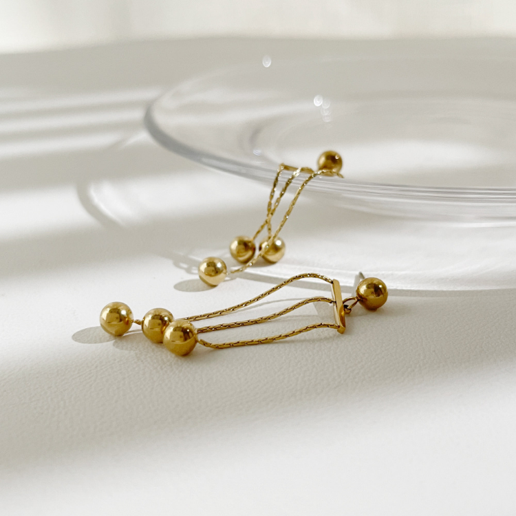 Be the first to review “New Light Luxury Gold Plated Jewelry Gold Ball Tassel Ear Drops Stainless Steel Chain Ball Ear Studs” Cancel reply