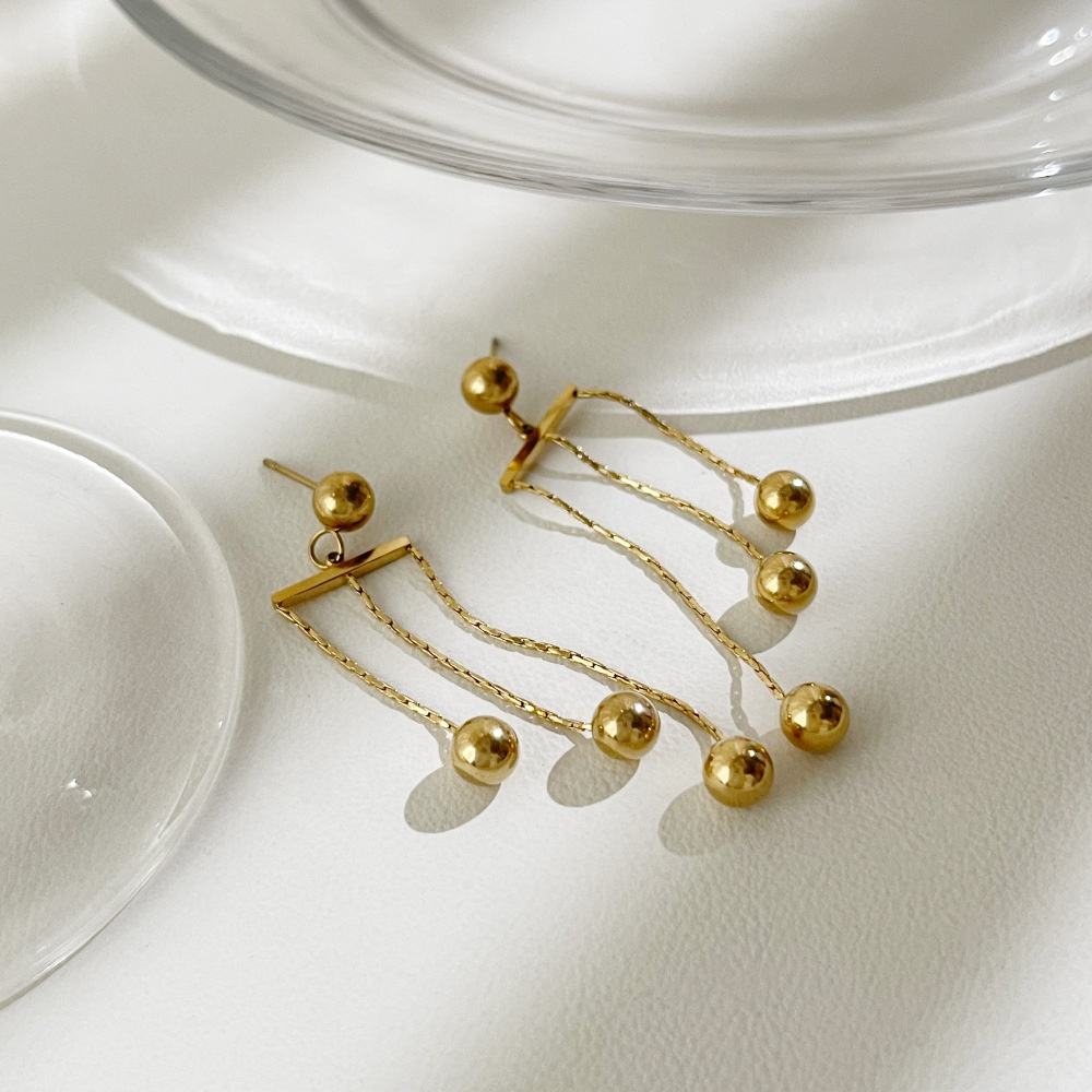 New Light Luxury Gold Plated Jewelry Gold Ball Tassel Ear Drops Stainless Steel Chain Ball Ear Studs