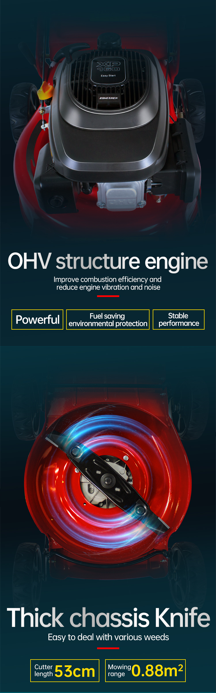 Feature:4-Stroke, Anti-slip, Antistall, Cordless, Forced Air Cooling, Grass Box, Height Adjustable Handles, Mulch, High Torque, Self Propelled, Single Cylinder, Steel Chasis