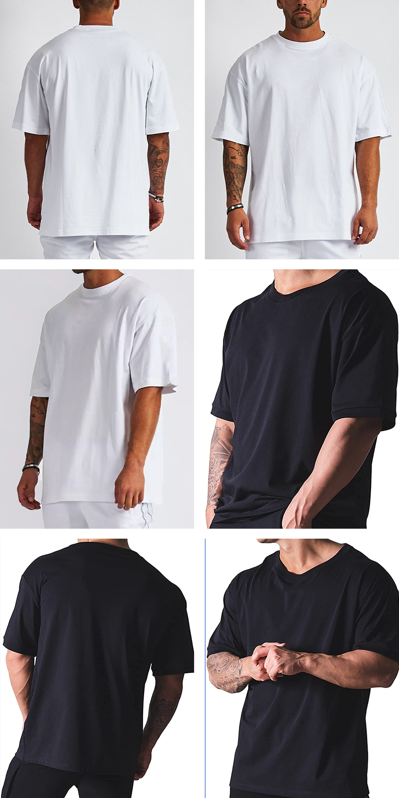 Oem Streetwear Boxy Plain Blank Vintage Drop Shoulder T-shirts 100% Cotton Black T Shirts Custom Logo Oversized Tshirts