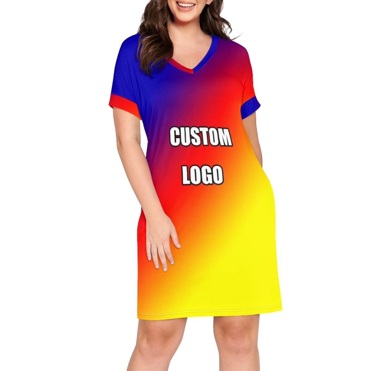 Personalized Custom Design V-Neck Dress For Women Short-Sleeved Polyester Spandex Dress Wholesale Quick-Drying Women’s Clothing