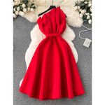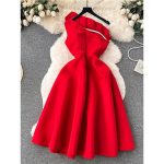 Plus Size High Quality Vintage Slim Midi Dress For Women Strapless Sleeveless 3D Lace Vestidos Ladies Elegant Dresses