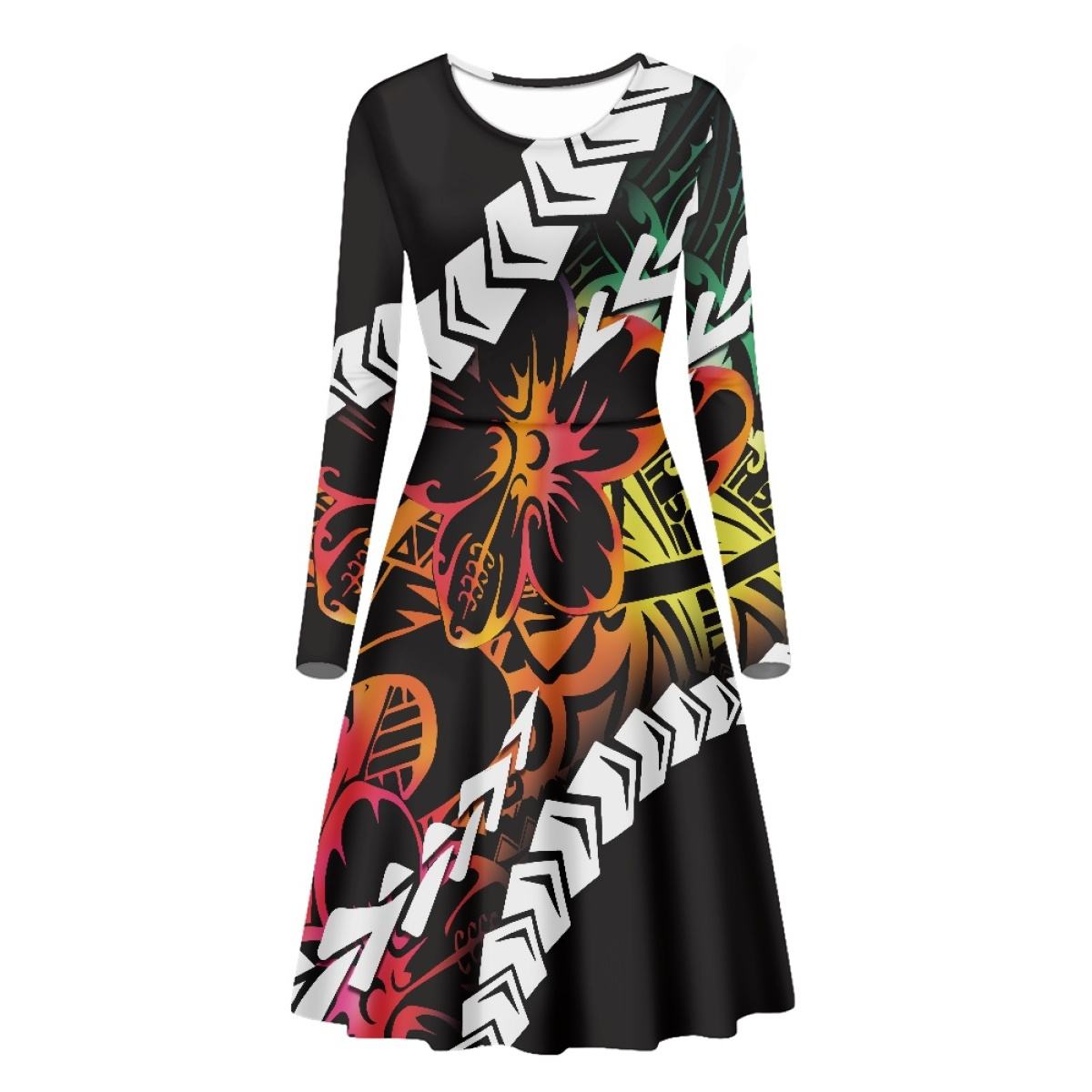 Polynesian Style Custom Designed Dress Long Sleeve Crew Neck Mini Dress Dropshipping Polyester Spandex Soft Comfortable Clothing