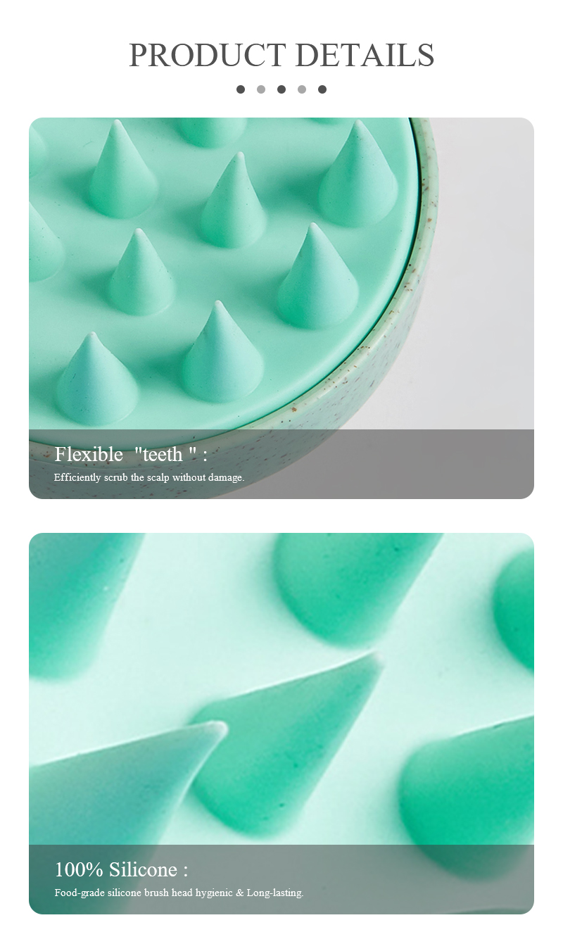 Private Logo Eco Friendly Wheat Straw Hair Scalp Massager Shampoo Brush Soft Long & Flexible Silicone Bristles Hair Care